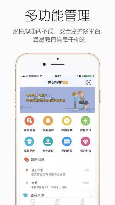 “世紀(jì)守護(hù)”是一款基于智慧校園的家校共教app,全面覆蓋K12學(xué)校教學(xué)和學(xué)生安全的移動互聯(lián)網(wǎng)服務(wù)。