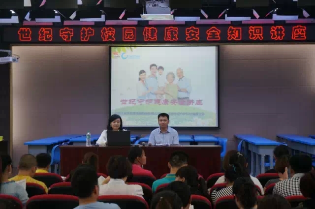在學(xué)校多媒體教室,在“世紀(jì)守護(hù)校園健康安全知識(shí)講座”上,世紀(jì)守護(hù)項(xiàng)目推廣組劉佳音老師向老師及家長朋友講解了兒童生活安全防護(hù)、家長應(yīng)采取怎樣的預(yù)防和保護(hù)知識(shí)等內(nèi)容。