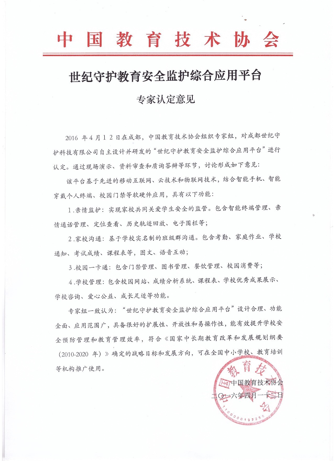 “世紀守護”在2016年4月份獲得中國教育技術(shù)協(xié)會的權(quán)威認定,肯定了其在全國中小學校和教育培訓機構(gòu)的推廣和應用價值。