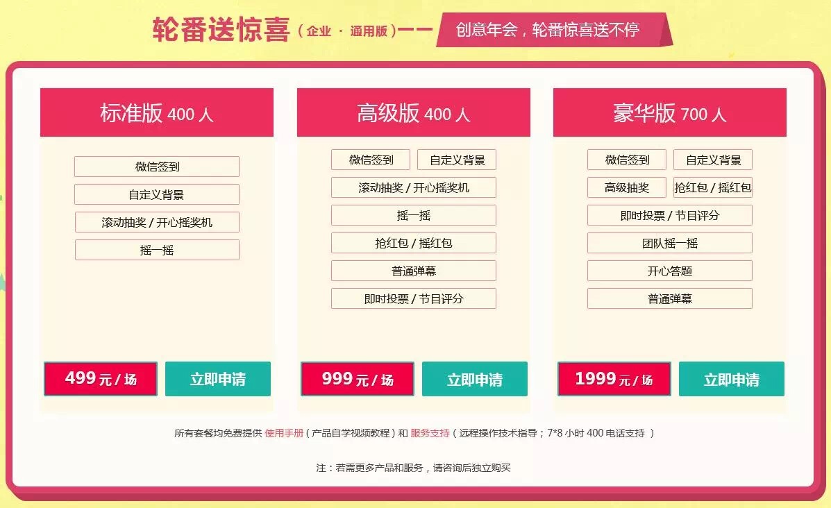 PS:本次活動(dòng)還支持套餐功能可替換(同等價(jià)格)和定制年會(huì)功能哦!