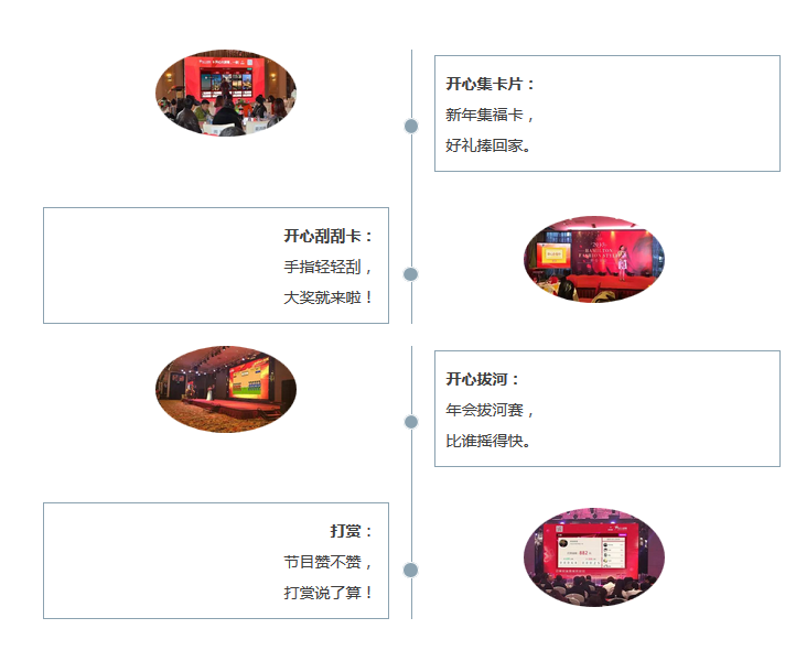 開心互動(dòng)全新功能來襲,海量的互動(dòng)產(chǎn)品,花樣的年會(huì)玩法,多種創(chuàng)意組合方式,讓年會(huì)盡興到底!