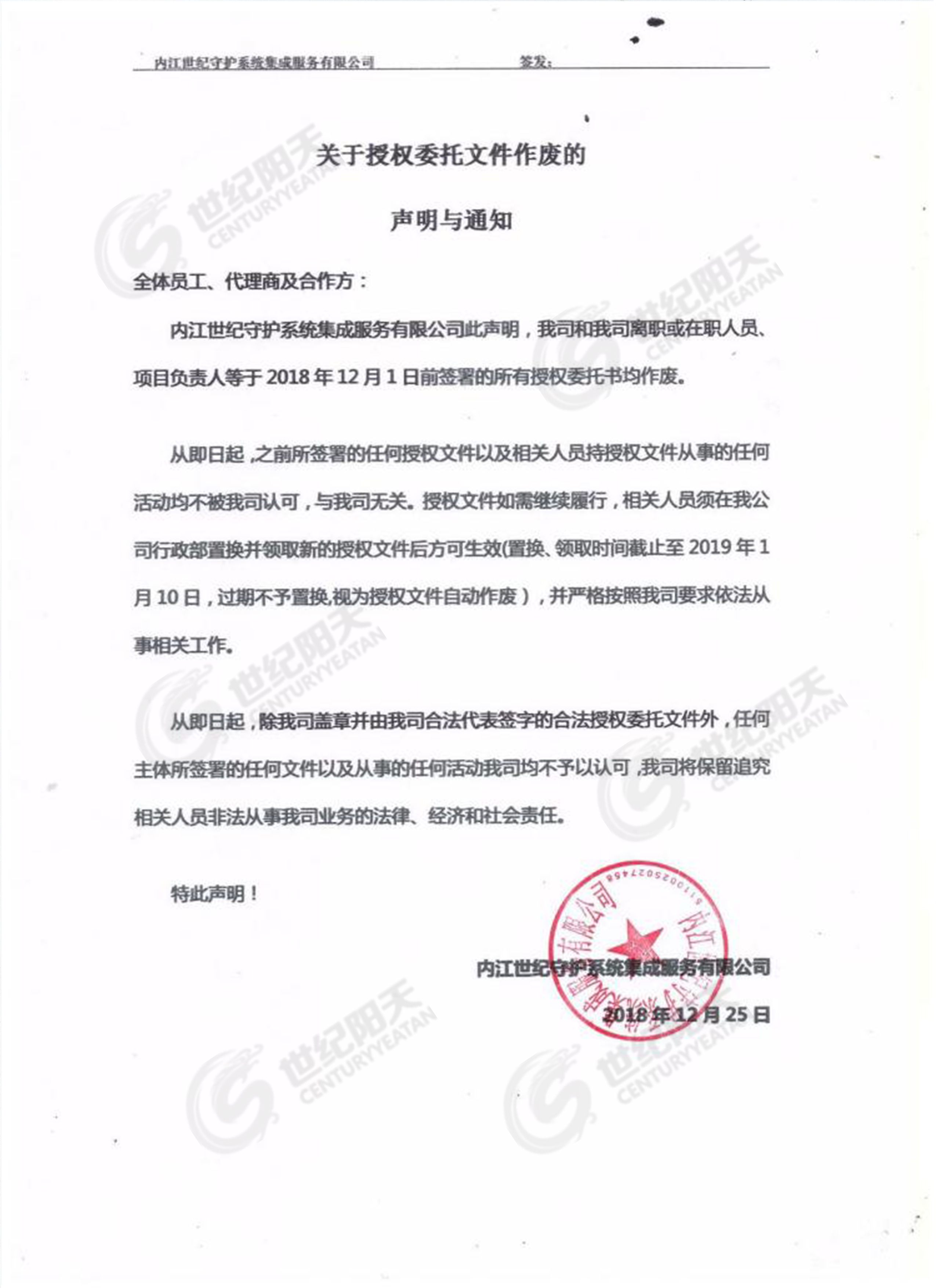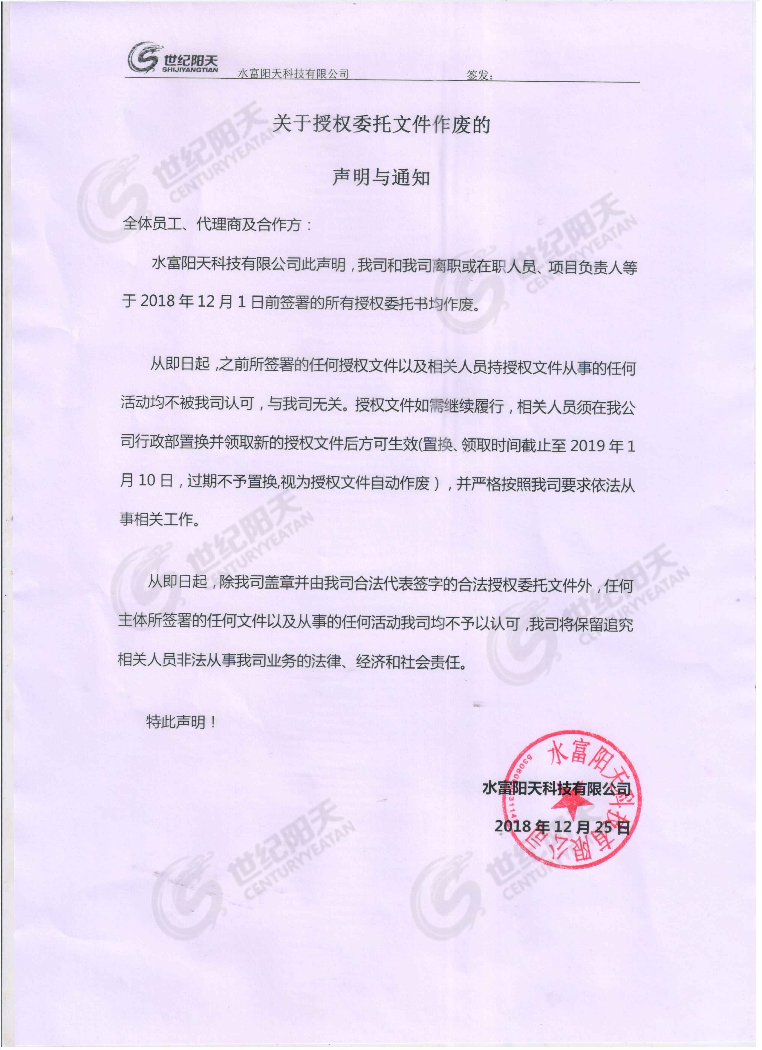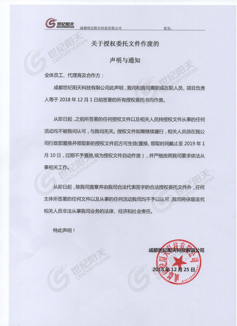 2018.12.25 [實(shí)時(shí)公告] 發(fā)布者:世紀(jì)陽(yáng)天 瀏覽次數(shù):1172