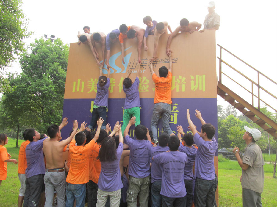 最后一個(gè)項(xiàng)目“畢業(yè)墻”,是由兩組團(tuán)隊(duì)共同完成的任務(wù), 期間,團(tuán)隊(duì)中很多閃光點(diǎn)在這個(gè)項(xiàng)目中都體現(xiàn)得淋漓盡致。為了能讓隊(duì)員登上畢業(yè)墻而被踩在腳下的“人梯”,不遺余力把每名隊(duì)員拉上畢業(yè)墻的“拉手”,在后面做著安全保護(hù)的“后盾”……除這既定的這些角色,團(tuán)隊(duì)的每一名伙伴都在主動(dòng)承擔(dān)著責(zé)任,上去的隊(duì)員看到“拉手”拉不動(dòng)而主動(dòng)伸出的雙手;為了不讓“人梯”太累,下面等待的隊(duì)員有的高舉雙手做著保護(hù),有的也貢獻(xiàn)著自己的肩膀讓隊(duì)友踩在腳下;甚至有的隊(duì)友沒有踩對正確的位置,而把被踩人的肩膀都踩掉皮了,但被踩者沒有一句怨言;有的隊(duì)友甚至用自己的腿和手臂當(dāng)起了梯子……為了隊(duì)友的安全,為了團(tuán)隊(duì)的目標(biāo),世紀(jì)陽天的男女同事不分彼此奉獻(xiàn)著自己的力量和智慧……現(xiàn)場的一起,讓每位參訓(xùn)人員都為之感動(dòng),而在這一刻的感動(dòng)更是我們平常工作中所看不到的,原來我們是如此的團(tuán)結(jié)一心!