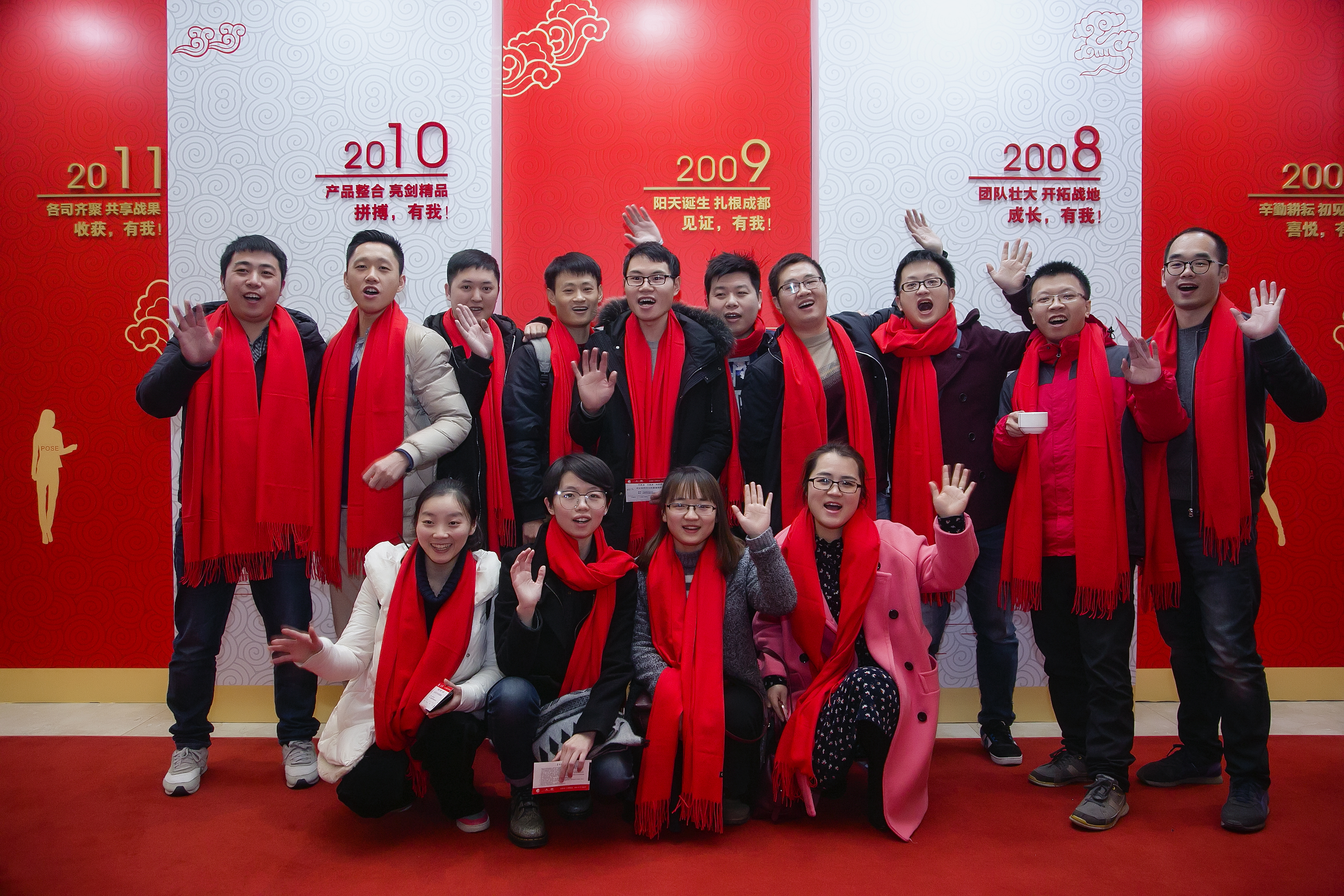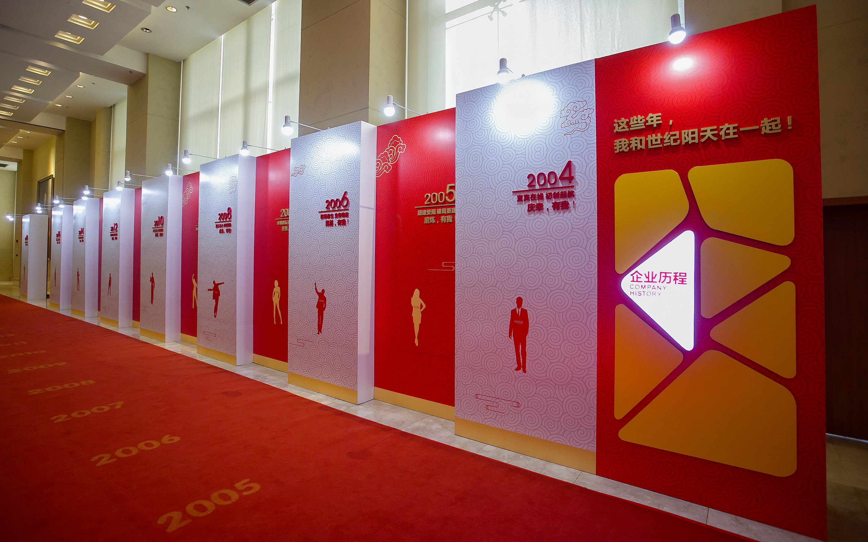 踏著紅地毯進(jìn)入宴會(huì)廳,右手邊便是以“這些年 我和世紀(jì)陽(yáng)天在一起”為中心的企業(yè)文化墻,從2004年宜賓在線初創(chuàng)起航;到2009年世紀(jì)陽(yáng)天誕生,扎根成都;再到2014年全國(guó)跨步,立足成都;2018年輝煌續(xù)寫,進(jìn)無止境……近14年的企業(yè)歷程,展現(xiàn)了世紀(jì)陽(yáng)天腳踏實(shí)地、茁壯發(fā)展、昂首前進(jìn)地信心與決心。