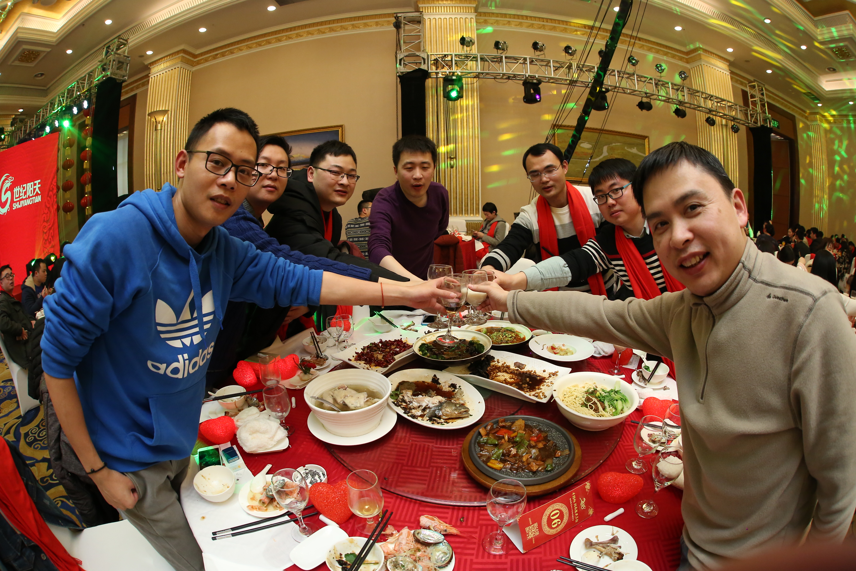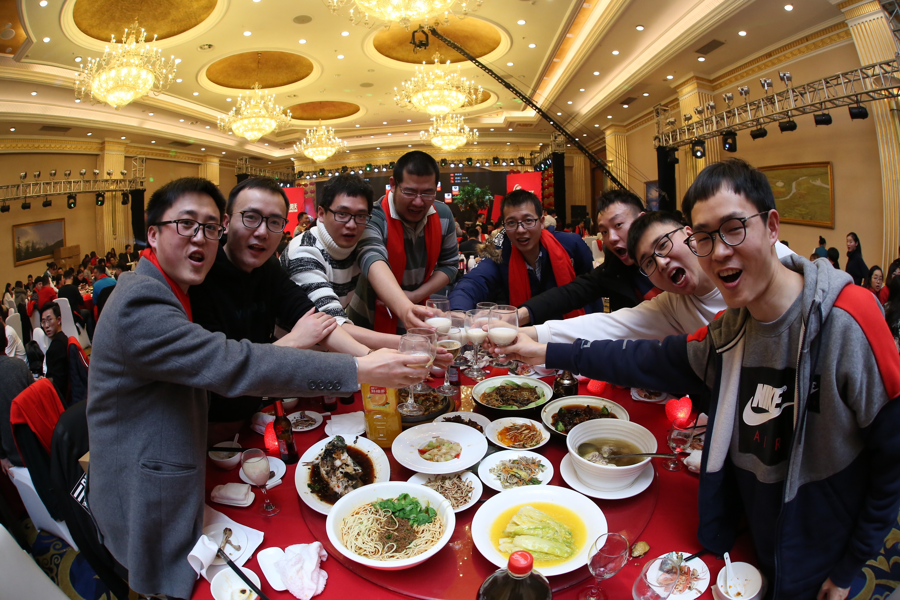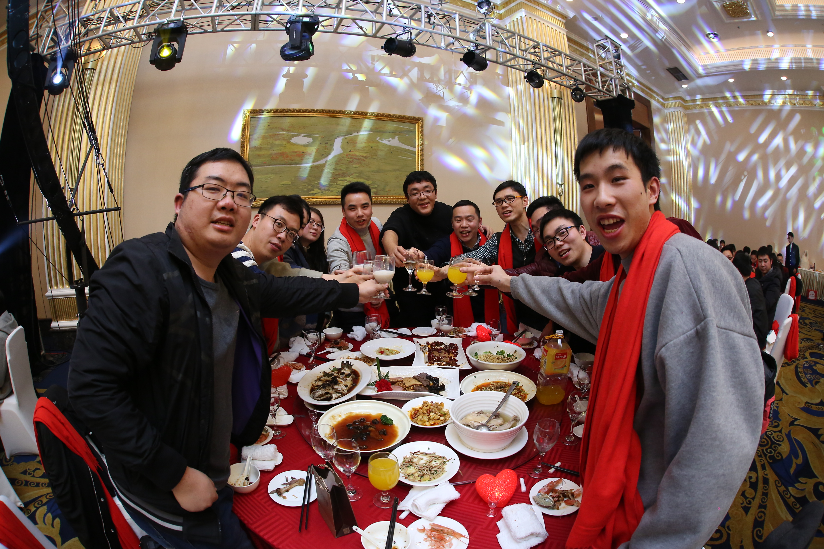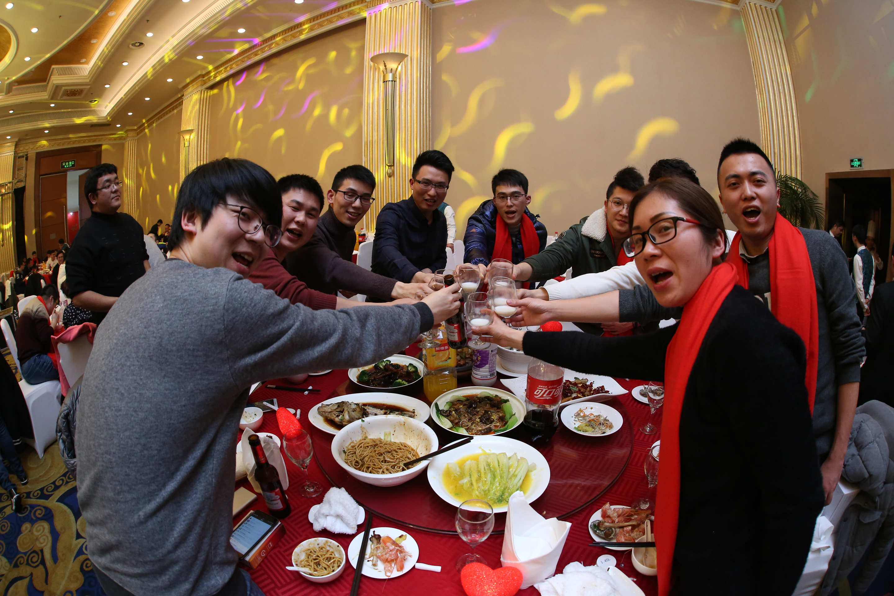在三位副總共同舉杯致祝酒詞后,晚宴正式開始。珍饈美酒,接踵而至,領(lǐng)導(dǎo)與員工們觥籌交錯(cuò),酣暢淋漓。沒有往日嚴(yán)肅的工作氣氛,而是像朋友家人一樣把酒言歡,臉上洋溢著喜悅的笑容,這一刻我們都無比幸福。在其樂融融的氛圍下,2018年年會(huì)圓滿落下了帷幕。