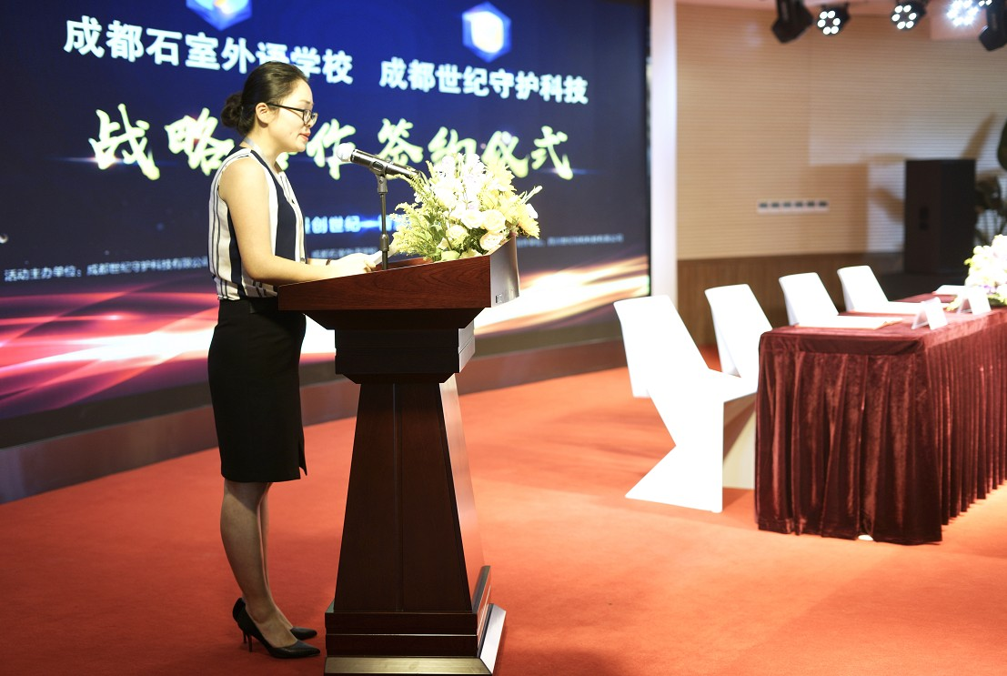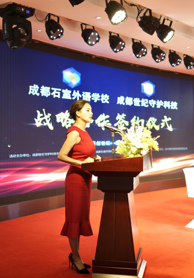 儀式伊始,世紀陽天董事長向付國女士、成都石室外語學校校長龔華明先生、以及特約合作伙伴四川世紀恒和科技有限公司副總經(jīng)理馮娟女士等領(lǐng)導分別上臺致辭,三位領(lǐng)導共同表達了對于此次合作的期待與建立長久合作關(guān)系的良好愿望。