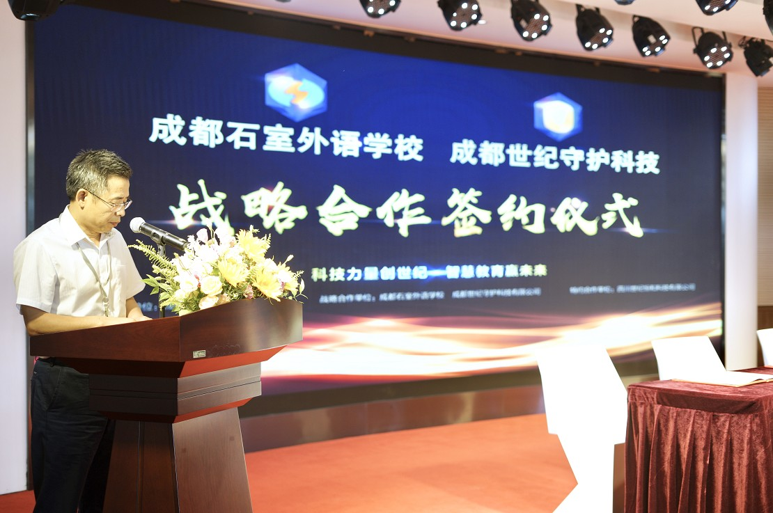接下來,成都世紀守護科技有限公司CEO唐紅林先生則圍繞構(gòu)建一體化的“互聯(lián)網(wǎng)+教育”大平臺、大數(shù)據(jù)推動教與學科學發(fā)展、構(gòu)建多方育人平臺、優(yōu)化教育資源合理分配、打造安全的成長環(huán)境這五個方面對此次戰(zhàn)略合作的內(nèi)容進行了深入淺出的講解。