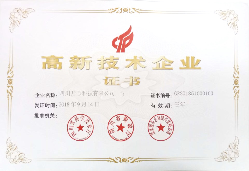 近日,世紀(jì)陽天旗下數(shù)字會務(wù)品牌開心科技經(jīng)過數(shù)月的籌備工作,并經(jīng)四川省科學(xué)技術(shù)廳、省財政廳、省國家稅務(wù)局及四川省地方稅務(wù)局專家的層層評審,最終順利喜獲“四川省高新技術(shù)企業(yè)證書”,證書編號GR201851000100。