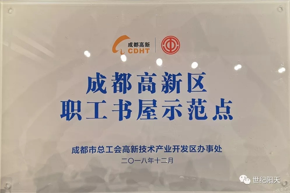 導(dǎo)語(yǔ):為貫徹落實(shí)《全國(guó)工會(huì)職工書屋建設(shè)工程五年規(guī)劃(2014年—2018年)》,根據(jù)成都高新區(qū)工會(huì)辦事處《關(guān)于做好2018年度“職工書屋”示范點(diǎn)建設(shè)工作的通知》,世紀(jì)陽(yáng)天自2018年7月啟動(dòng)職工書屋優(yōu)化創(chuàng)建工作以來(lái),經(jīng)各級(jí)工會(huì)逐級(jí)初選、推薦、申報(bào),高新區(qū)工會(huì)辦事處組織檢查驗(yàn)收,最終喜獲“成都高新區(qū)職工書屋示范點(diǎn)”榮譽(yù)稱號(hào)。