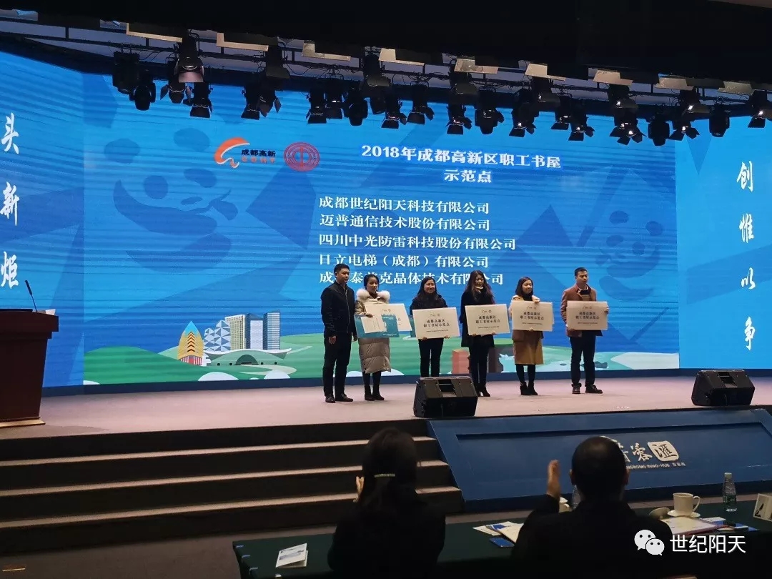2019年1月11日,在“2018年成都高新區(qū)工會(huì)工作總結(jié)會(huì)議暨‘學(xué)習(xí)中國(guó)工會(huì)十七大精神’宣講活動(dòng)”的現(xiàn)場(chǎng),高新區(qū)工會(huì)為我司授予“職工書屋示范點(diǎn)”榮譽(yù)牌匾。